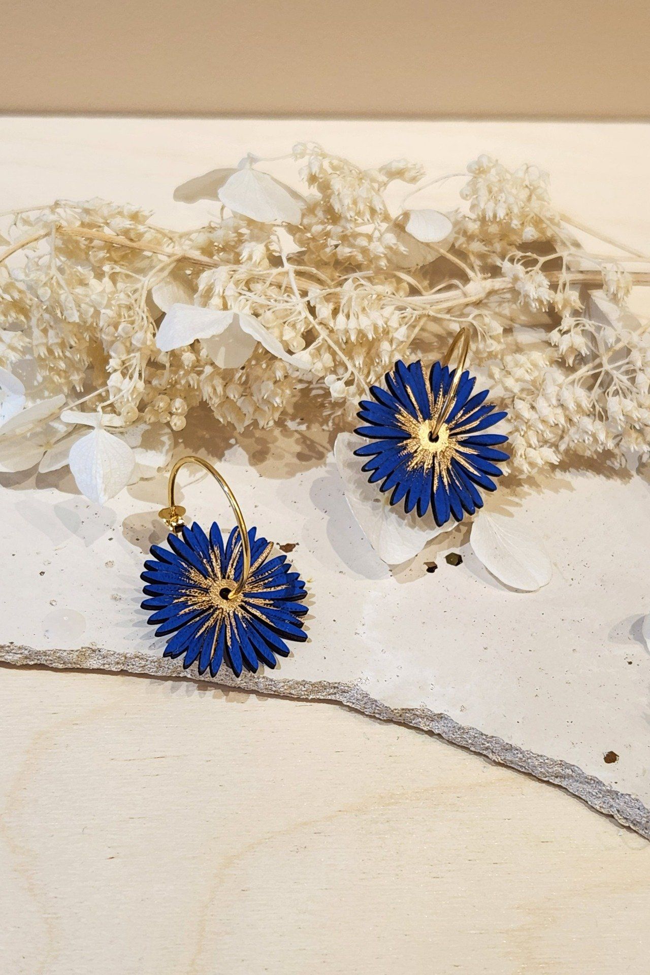 Idéales pour un look bohème, artistique ou contemporain, ces boucles d’oreilles créoles avec fleur peinte à la main sont une création artisanale pensée pour sublimer votre quotidien.